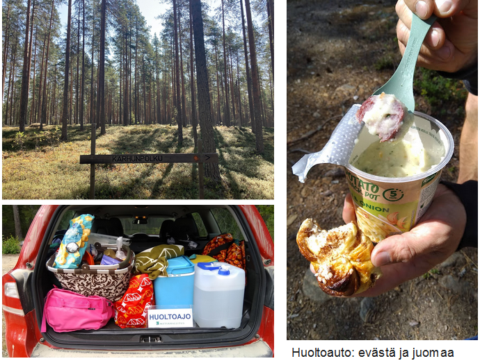 Matka onnistui kaikkinensa hyvin. Karhunpolku tarjosi parastaan neulaspolkuineen sekä humisevine harjuineen, lampi ja suo näköaloineen. Talvisodan muistomerkit ja luonnossa näkyvät jäljet nostattivat kiitollisuuden tunteen siitä, että saamme vapaasti liikkua ja juosta poluilla. Karhunpolku oli myös hyvin rauhallinen eli ainoat vaeltajat olivat kaksi pyöräilijää ja muutamia ihmisiä Ruunaalla.